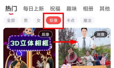 2.点击如图所示位置的【抠像】功能,并选择模板。