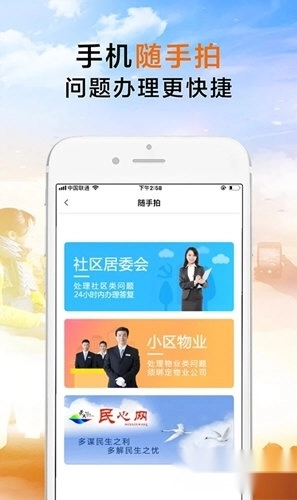 7、线上社区:设有居民交流论坛,论坛内的“随手拍”栏目可实现派单办理功能。