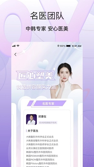 1、提供丰富多样的面部轮廓塑造、玻尿酸填充、美体塑形、口腔牙科等美容项目,支持选择与预约。