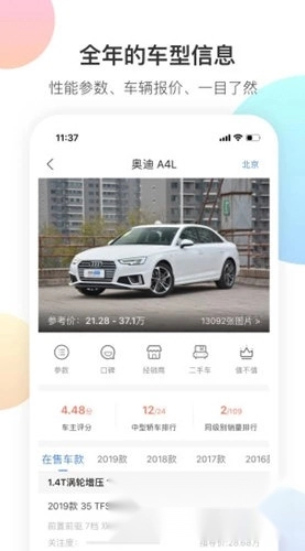 2、【车型大全】汇聚超1300款车型、9000余款车款,搭配百万张高清图片供您浏览,助您轻松找到心仪座驾;20000余家经销商提供实时报价,让您购车更透明、不吃亏!