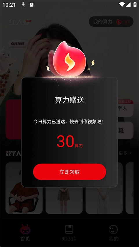 答:登录后在首页找到算力领取的入口,日常登录能够领取额外的算力;创作视频的时候会自动扣除相应的算力,要是算力不够的话可以在软件里面直接购买。