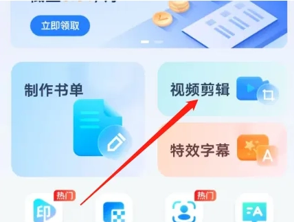 2.打开App首页后,点击视频剪辑功能,上传需要剪辑的视频