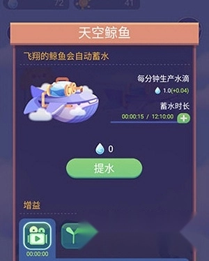 2、天空鲸鱼:既能自动收集水滴,也能通过观看广告来提升收集进度