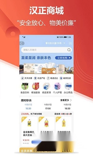 5、多种类型的商品供您选购,涵盖粮油、食品、护理用品、办公用品、纸品等。
