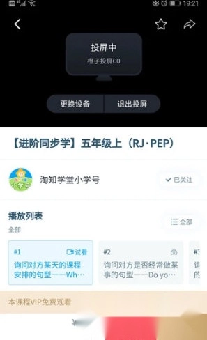 2、进入课程详情页,点击视频播放页面的TV图标。