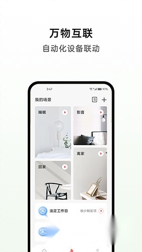 2、【智能情景】设备之间可实现互联互通,只需一键操作就能启动所有相关联的设备。