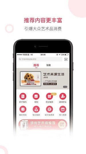 ·我的:购得彰显品位,玩出潮流风尚,买卖操作便捷顺畅;无论是艺术家、收藏家,还是画廊、拍卖行,各类身份随心切换。在拍卖场上寻觅心仪好物,参与专场线上竞拍,实时感受竞价氛围;市集淘宝汇聚海量名家艺术珍品,静候您的发掘;艺家装饰打破千篇一律,以艺术之美点亮家居空间;申请店铺流程便捷,助您快速成为签约商家。