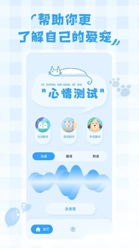 无论是家里的狗狗、猫咪,还是其他宠物伙伴,鸟语翻译器都能帮你更深入地理解它们的想法。简单操作就能把宠物的叫声转化为你能听懂的语言,让你和宠物实现亲密沟通。另外,借助心情测试,你还能迅速了解爱宠的情绪状态,从而给它们更贴心的照顾。