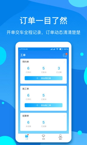 2、一键开单:简化开单流程,可随时跟踪记录工单内容、金额及施工进展情况