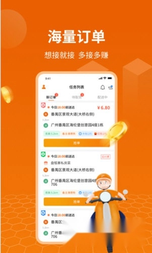 每天平台都有大量订单,确保每位骑手每日都能接到充足的订单。