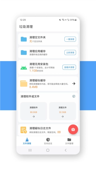 一键扫描与清理功能,操作简单便捷,能轻松帮助用户清理空文件夹和不必要的缓存数据。