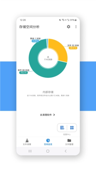 打开XB清理器后,首页会显示当前的存储使用情况。