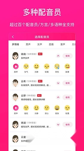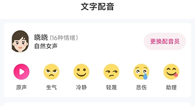 1、首先打开配音大师,可以选择更换配音员和情绪;