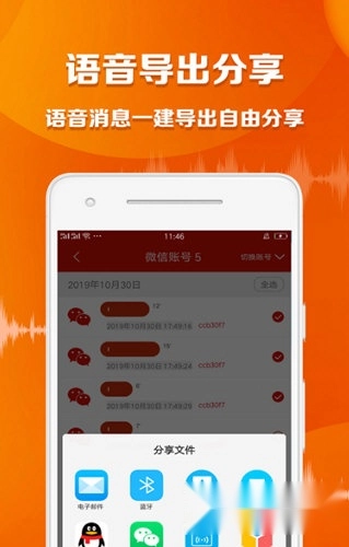 【语音分享】语音导出大师提供多种分享途径,只需一键操作,就能把你的语音文件分享给好友。