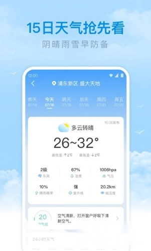 15天详细预报:涵盖阴晴雨雪、气温气压、风力风向及空气质量等全方位信息。