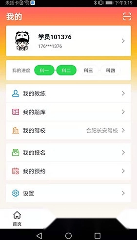 贯穿整个学车过程,涵盖线上报名、培训进度查询、教练车预约、驾驶员陪练等功能。