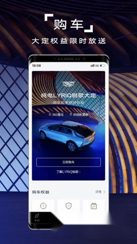 购车板块提供车辆选配功能,您可在此进行车辆预定/预订,还能预约试驾;参与限时大定活动,可享受专属定车权益;更多购车相关的详细信息,都能在这里一站式了解。