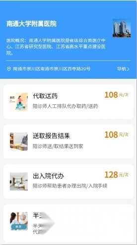 3、项目丰富,提供的陪诊服务涵盖陪同就医、代问诊、检查登记等多种类型,内容十分全面。