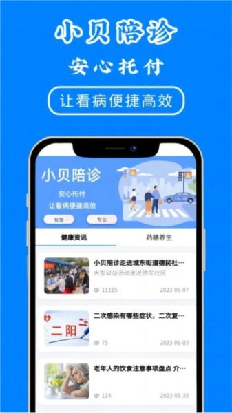 小贝陪诊是贝富信息科技有限公司开发的一款专注于陪诊服务的软件。它具备丰富且实用的功能,涵盖代预约挂号、陪同就医、陪同检查、代排队以及代取检查结果等。平台配备专业的陪诊人员,全程陪伴用户就医,在整个过程中为用户提供贴心、优质的服务,让用户不再感到孤单。