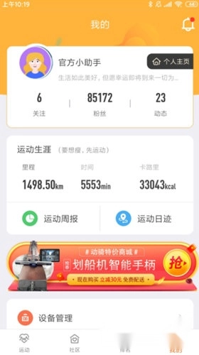 1、在动骑的个人中心,我们点击“设备管理”。