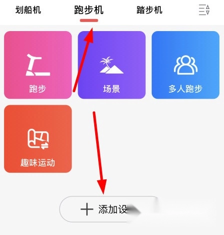 1、在动骑的主界面,我们选择“跑步机”选项,然后点击“添加设备”按钮。