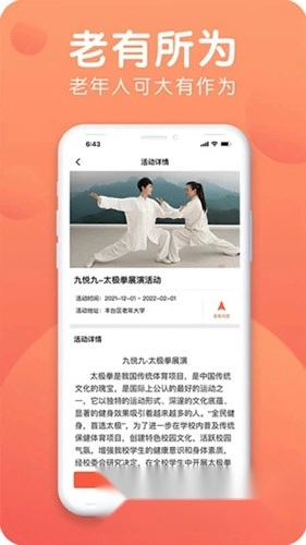 3、九悦九的年长者可以大有作为,我们会提供技术支持与服务,助你发挥专长、展示才艺。