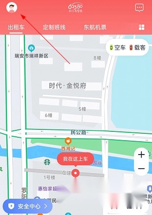 1、进入62580乘客端,点击左上角的头像。