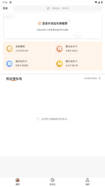 2、成功登录软件后,回到首页进行定位操作,就能查看周边的停车场。