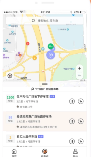 4、当然你也可以点击“找车位”选项,在这里你可以查看当前地图并找到相应的停车场。