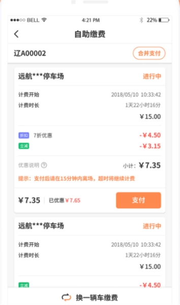 2、停车优惠:用户完成车辆认证后,可享受路内停车的优惠福利,从而降低停车费用。