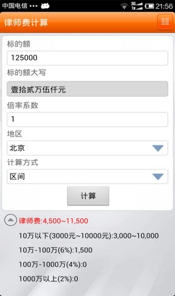 4、律师费计算,支持全国各省份,与新标准同步。