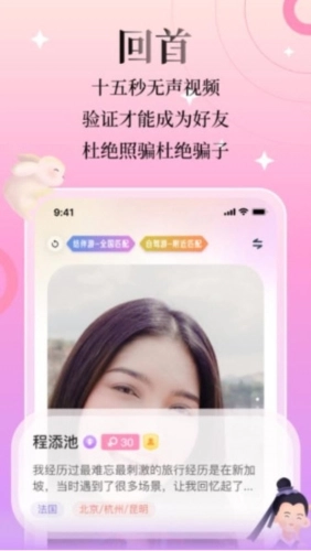 2、视频认证:交友双方需完成15秒的无声视频验证,方可建立好友关系。