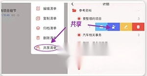 2、左滑操作:能对项目或清单快速进行共享、编辑、删除等便捷操作;右滑操作:则可以复制清单。