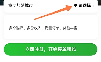 1、第一步是打开易通快车,接着在主页面选择意向城市,之后点击立即注册;