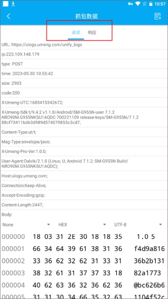 7、点击任意一个抓取数据的页面,就能看到请求与响应的抓包数据。