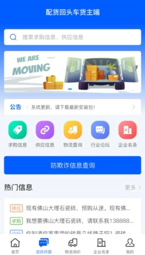 3、货主能够发布瓷砖产品的供应或求购信息,并与其他货主展开交流
