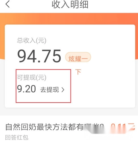点击总收入,就能查看尚未提现的金额,然后点击“去提现”按钮即可。
