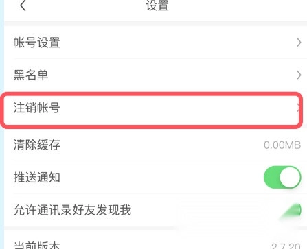 在【设置】界面,选择并点击【注销账号】选项。