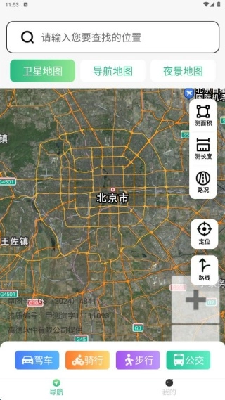 1、进入后,可使用驾车、骑行、步行、公交等线路搜索功能。