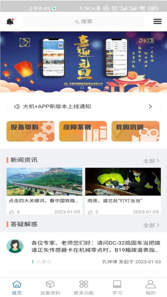 大机+是一款功能强大的铁建培训学习平台,借助该平台可实现与客户的沟通互动、在线培训、资料查阅以及专家资源共享,堪称当前行业内最权威的信息共享平台。