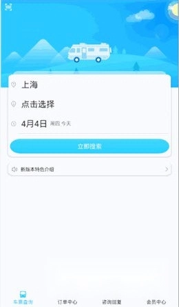 1、打开上海客运总站,在主界面搜索出发地和目的地。
