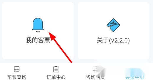 1、进入上海客运总站的会员中心后,点击“我的客票”选项。