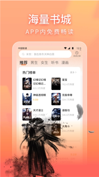 1、海量书籍,类型丰富:覆盖全网热门小说,分类全面,无论是古风穿越还是现代都市,一触即达。