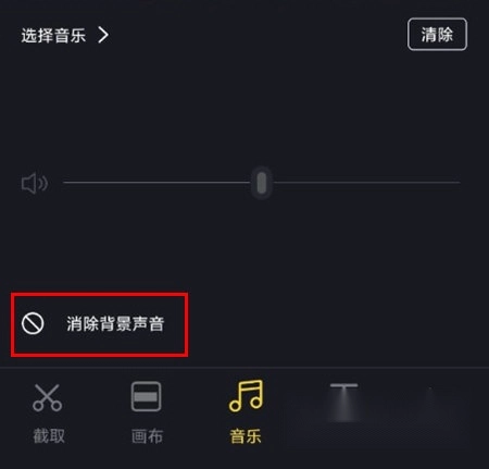 我们导入视频后,点击【音乐】选项,接着在其中选择【消除背景声音】功能就可以了。