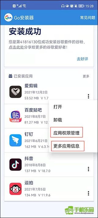 2、完成后需要用户手动操作,因此需授予相应权限,包括读取应用列表、允许未知来源应用等,完成后会显示谷歌套件已安装。