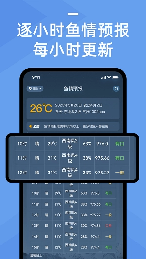 1.能够依据天气状况协助用户分析鱼群情况,而且更新速度十分迅速。