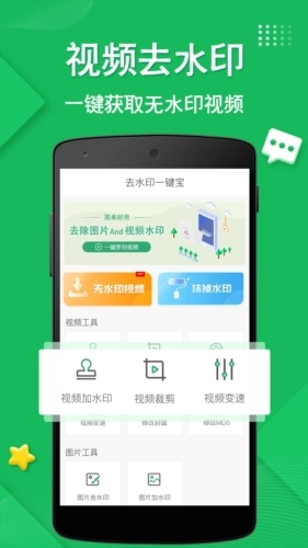 去水印一键宝是一款主打视频提取功能的软件,操作简便,能有效降低水印去除后的违和感。用户借助它可轻松清除视频与图片上的文字水印,还能提取热门平台的无水印视频,实现热门视频一键提取。该软件已更新至icon2版本,新增区域裁剪功能,能一步完成区域裁剪,达成无痕去水印效果。此外,软件还集成了水印相机等专业视频剪辑功能,是一款功能多样、上手容易的视频编辑工具。