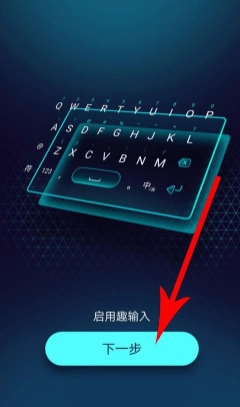 接下来进入趣输入的启用设置首页,按照提示点击“下一步”进入“可用虚拟键盘”界面,找到当前正在使用的输入法,点击它右侧的功能按钮并将其关闭。