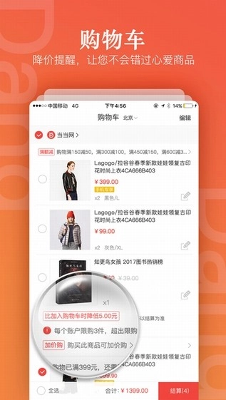 当当网应用是全球领先的综合性网上购物平台,涵盖服装、知名鞋履、图书、家居、孕婴童等多种品类,所有在售商品均为正品。该应用支持在线比价、货到付款、上门退换货等服务,帮助用户既省钱又省心。