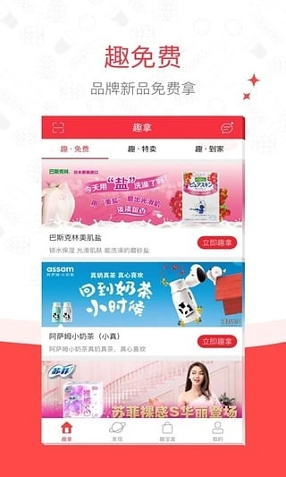 当下超火的二维码领实物移动应用来啦!想体验各品牌好物?想为喜欢的品牌打call?趣拿让你随心领!美食、潮玩、美妆、日用品,趣拿每周上新,周周都能领!